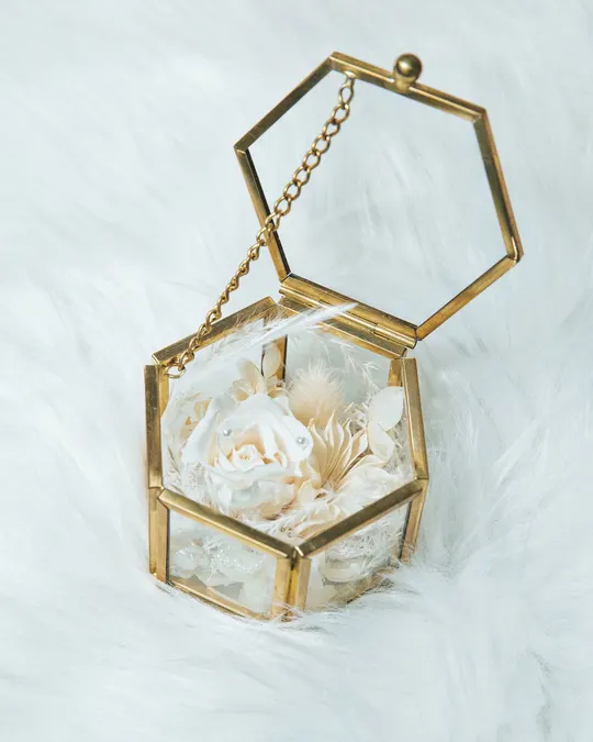 “ 夜莺与玫瑰 ” 永生花玻璃花盒欧式工艺品玻璃盒金色首饰盒复古求婚 永不凋零的永生花给你一份永恒的爱意 ? 材质:普通玻璃 制作工艺:全手工 尺寸:3.5*3.5*4.5mm 表面工艺:抛光 摆挂形式:摆饰 风格:欧式 造型:几何形 #私人订制##永生花礼盒##设计美学#
