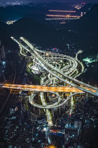 位于贵州的黔春立交,像一个跃动于山间的立体音符,在夜幕降临时,演奏着曼妙乐章