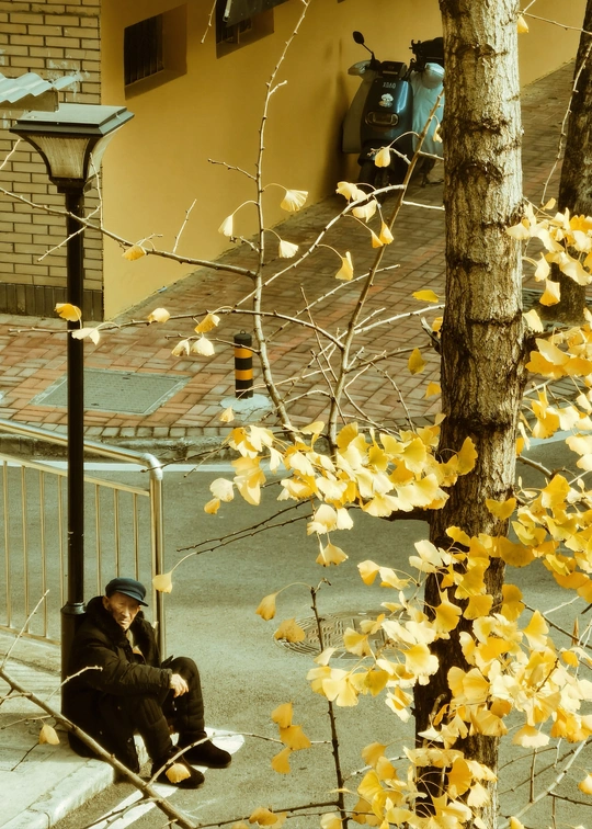 冬日,阳光明媚,路过一老旧小区,透过飘零的银杏叶,见一老者倚着路灯坐在地下。不胜感慨,当年他应该也是家中的顶梁,如茂盛季的银杏金黄,亮眼。如今银杏卸了盛装,他也无力天倚。关爱老人!从你我他