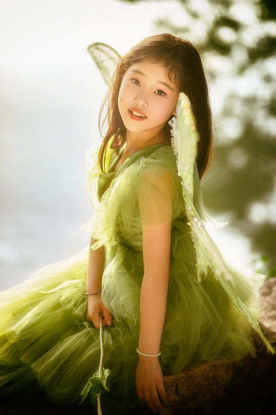 落日的余晖映照在湖面上,朦胧感油然而生,孩子突然地转头看向镜头,甜美的笑,让人心里暖暖的