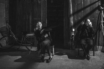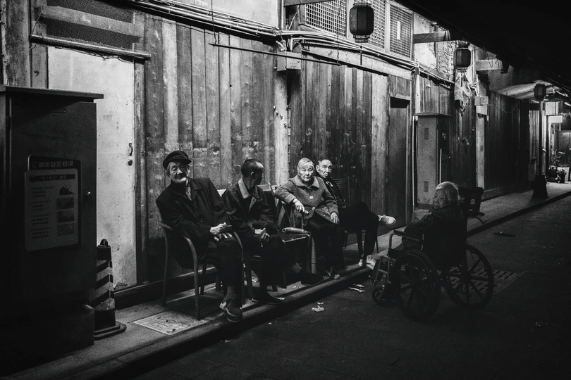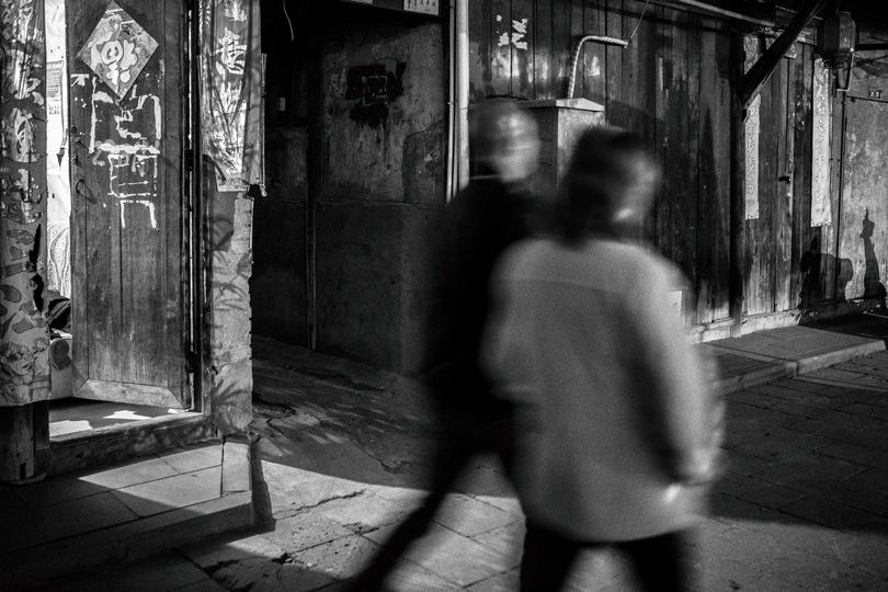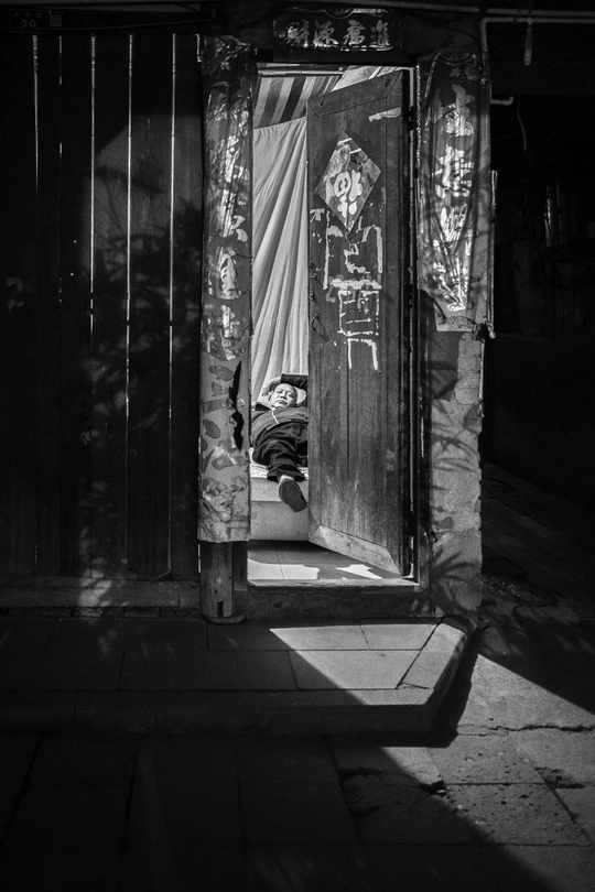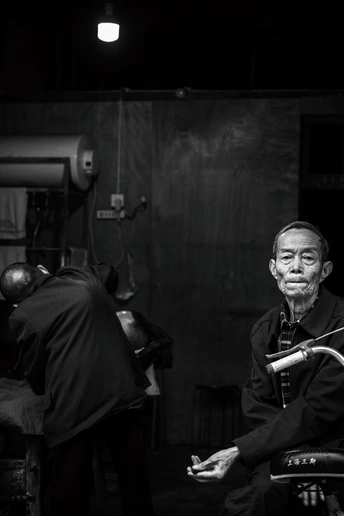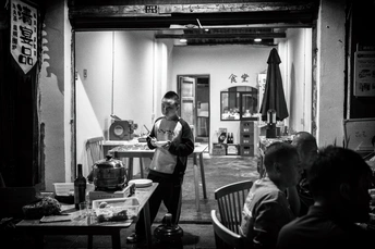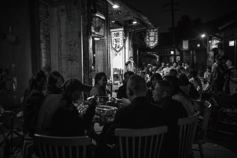 《彭镇之夜》 上个月去了趟彭镇,一直很想打卡那家老茶铺。结果当我进去的时候,发现里面全是来拍照的人。那个网红大叔也在那儿,但并没有表演他的绝技。相信那些摆拍的照片大家都审美疲劳了,我拍了些茶客,挺满意的,放在下一组。 这晚上的彭镇,一秒让我魂穿小时候。就很像以前去天回镇、凤凰山还有犀浦那边走亲戚,上坟。那个时候,真的很害怕漆黑的夜晚,阴森的树林和望不见底的深井。大人们总是围坐在一块儿,吃饭冲壳子,小孩儿们玩泥巴,捡石头,太久了,记不起来了。不过11月那天,我们一帮人吃吃喝喝,超有安全感,幸福感满满。 摄影:李子衿 地点:彭镇 时间:2023.11.04