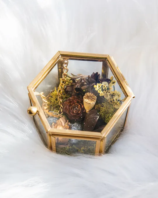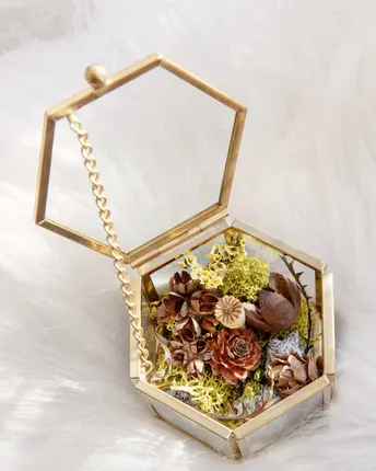 “ 夜莺与玫瑰 ” 永生花玻璃花盒欧式工艺品玻璃盒金色首饰盒复古求婚 材质:普通玻璃 制作工艺:全手工 尺寸:3.5*3.5*4.5mm 表面工艺:抛光 摆挂形式:摆饰 风格:欧式 造型:几何形 #私人订制##永生花礼盒##设计美学#