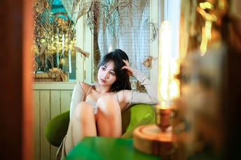 静享时光乐无边, 美女悠闲度光阴。 生活如诗映光影, 安然自在度流金。
