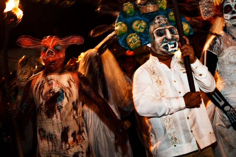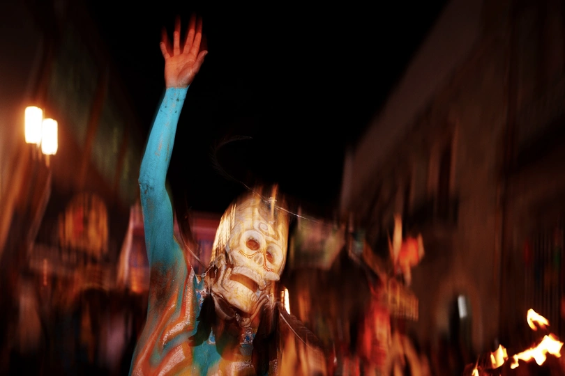 对于墨西哥人来说,死亡并非终点,而是生命中一个自然的阶段。每年的亡灵节,他们身着华丽服装,戴上面具,化身成骷髅亡灵,奏响各种乐器,热情洋溢地走上街头,欢迎已故亲人的灵魂回归人间,一同庆祝。这种独特的态度表现在他们既不沉浸于悲伤,也不被恐惧所困扰,因为在墨西哥人的心里,逝者永远存在于他们的记忆之中。