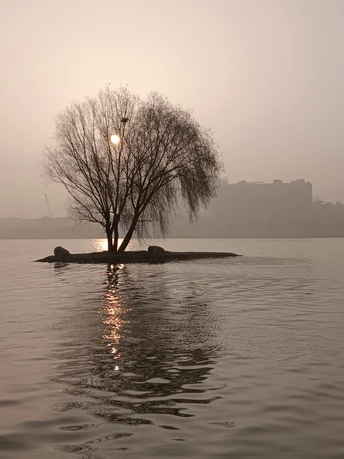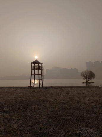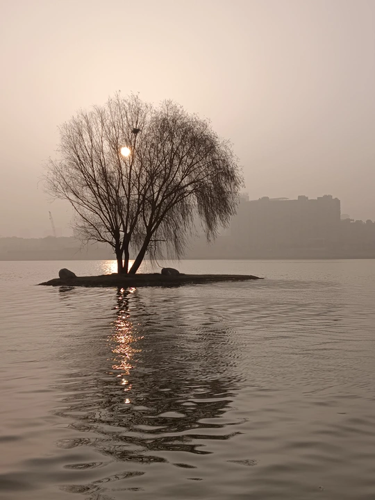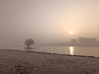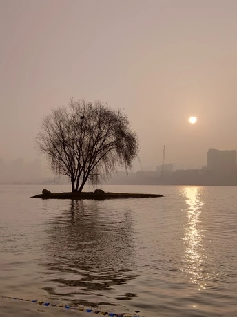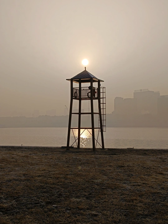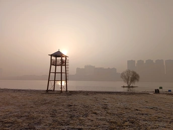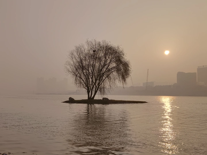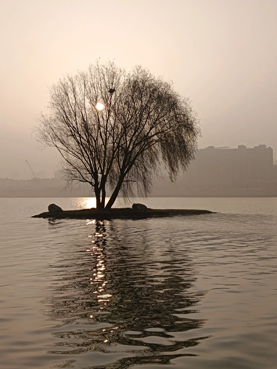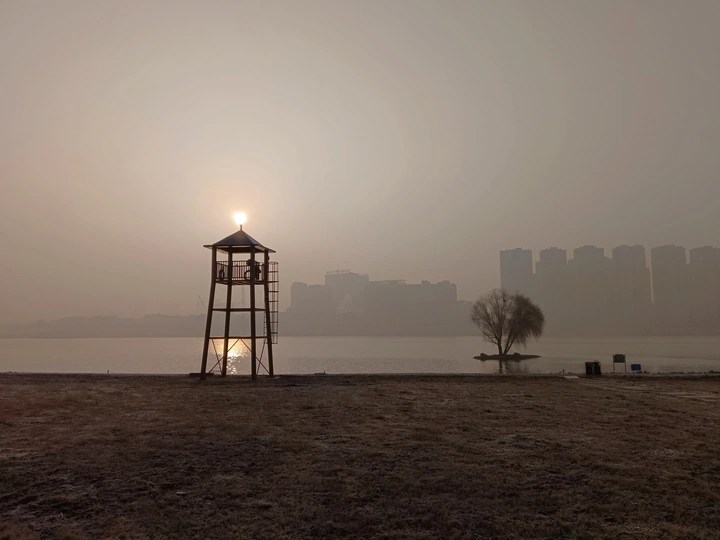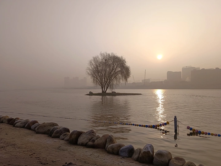 2024年元旦,仍然有雾霾,清晨的旭日冲破雾霾,冉冉升起,只是因为有雾,所以色调有点昏黄,手机记录分享。