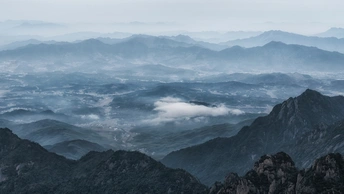 山峰在云雾中若隐若现,宛如人间仙境。水墨画般的黄山,独特自然美景表现得淋漓尽致,给人留下深刻的印象。
