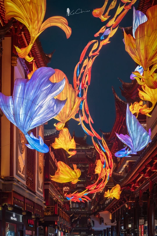 上海豫园(城隍庙)龙年新春灯饰上线,和往年相比令人眼前一亮,和小伙伴顶着寒潮趁人少的时候赶紧打个卡。 不过灯饰虽美,但是支架和电线有点多,太煞风景了。纵观全网,无论是相机拍还是手机拍,无一例外都是把背景压黑以隐藏杂线(可能有别的但没刷到),个人不喜欢乌漆麻黑的背景,只好一张张把支架和电线p掉,实在是p麻了。不过去掉杂线之后,灯饰看起来是悬浮的,更增加虚幻感和梦幻感,配合古香古色的仿古建筑,犹如大鱼海棠的剧照。