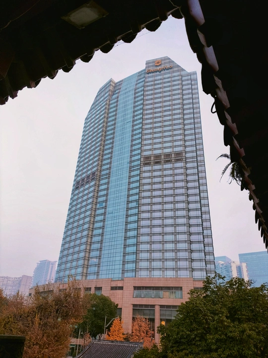 在成都九眼桥的安顺廊桥拍香格里拉高楼,感觉又不同了。有一种今古风格的良好感觉。