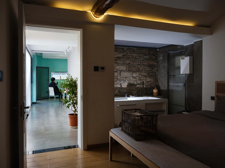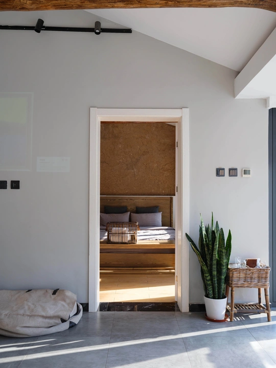 🎞🎞Provia胶片模拟 📍📍一山间·悦 一个小山坡上的院子,两室两厅,L型空间,客厅朝南,有巨大的落地玻璃,让白天都充满暖意。 卧室位于客厅东西两侧,东侧为老式木窗,阳光透进来的感觉很好。 厨房餐厅位于院落最西南端,绿色的墙面和我家里吧台的颜色比较像。餐厅开门出去是一个现代凉亭,夏天在此烧烤观星挺好。 往东可以看见黄花城野长城,南面对着山野,喝个咖啡看看山景也是放松的方式。 . 次日在古堡内转了转,进到另一个院落一山间·慢。水刷石的外墙、高地各异的方形空间,有一种堡垒的感觉,不仅让我想起了磊楼,也觉得与鹞子屿城堡相呼应。简单拍了几张照片,出门的时候一回头,墙体的形状与光影好似垛口,透过开口正好看见远处山上的敌楼,巧妙。