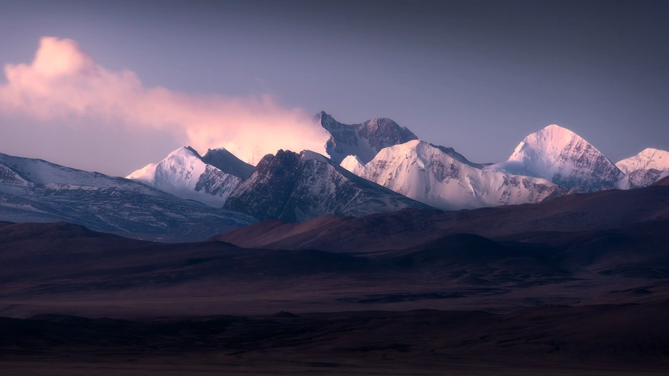 西xi藏zang岗巴县,日出时分,世界第三高峰“干城章嘉峰”(海拔8586米)的山顶上扯起了一朵巨大的旗云,仿佛在向世界宣告新一天的到来。