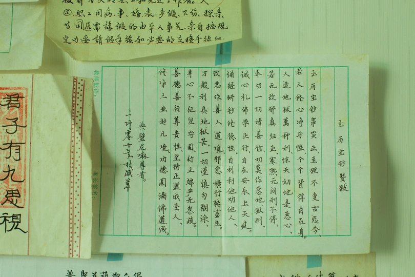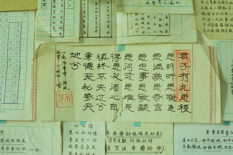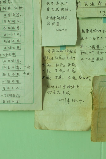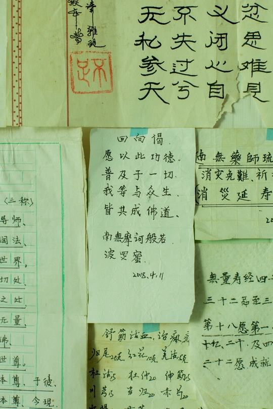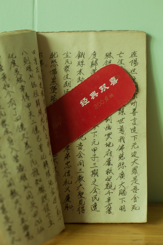 你居住过的房屋里,都是你留下的经书,还有一本圣经。这些书里,夹着你用烟纸剪成的大小不一的书签,那些复古的香烟品牌,堆在一起的时候,显得特别喜庆。还夹杂着一张又一张的书法笔记,有些写在香烟纸上,有些写在白色纸巾上,笔记的内容,包含了道家佛家,还有耶稣,你写的字真好看。还有好几条的珠串,都不是名贵的材质,但都被你打磨的很好。 还有风油精的存在,是贯穿每次我们见面时的气味。那个雕刻了竹叶的墨色砚台,像是从旧年代穿越过来的,充满了和周边事物格格不入的沉寂之美。那些没有了笔锋的毛笔,还是被好好的用塑料带包了起来。怀旧的灯草绒外套、好几台收音机和用的第一个手机都没有被扔掉。还有那本代表美好的家庭相册,我第一次看到自己婴幼儿时期的样子,还看到你穿白衬衣,轮廓硬朗,带有忧郁气质的文青模样,当然还有我妈,天生的乐观派。我选了你们谈恋爱的样子、我妈穿婚纱的样子、你们有了我的样子,我一个人的样子。 这些遗物,代表着你的精神支撑,你曾活过啊。 微博/倩小鱼zizi