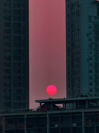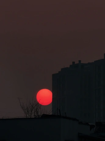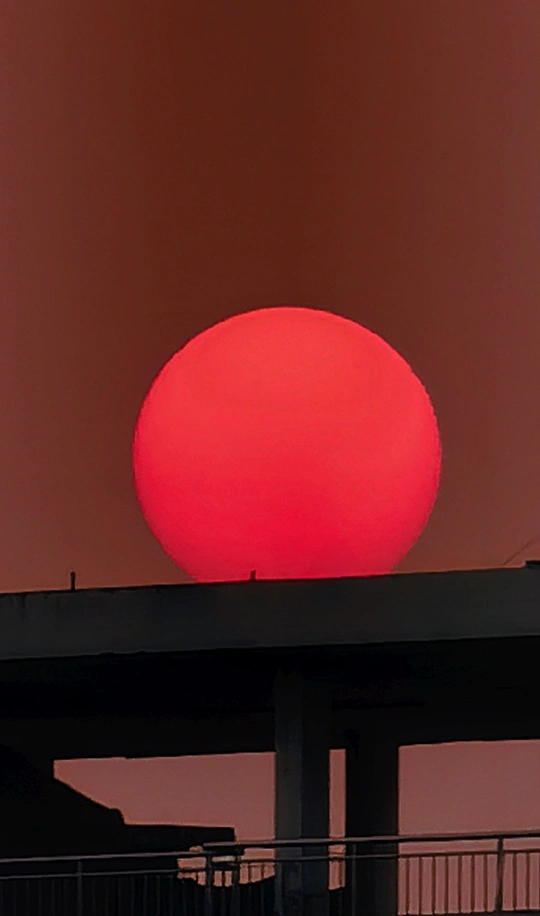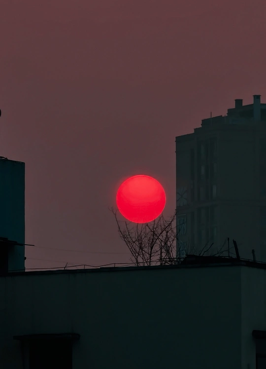 2024年1月4日,宜昌雾霾天,然而日落时的太阳却大而圆。红火的落日传递着2024的希望。
