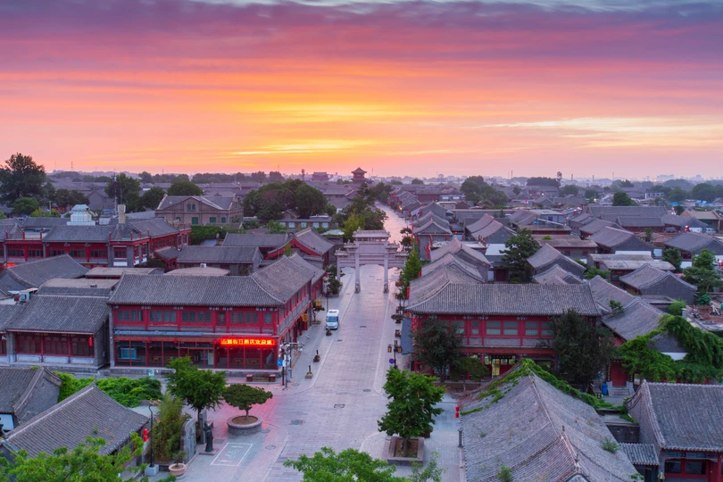 2021年6月16日,拍摄于河北省秦皇岛市山海关古城,表现了古城早霞之美。