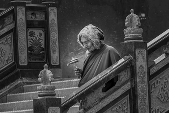 2019年5月22日,拍摄于四川省甘孜州色达县五明佛学院,表现了老人转经祈福的瞬间。 (1)