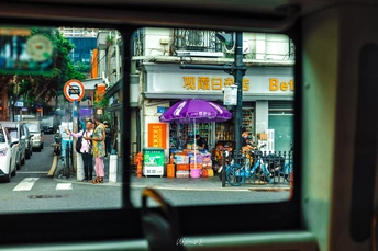 就是在这家店门口,你将会看到好看的落日晚霞。