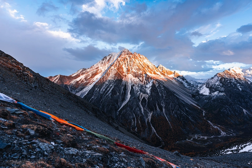 下午天气持续阴沉下雪,我们的商务车因为路太烂被困在了半山腰,本以为看不到日照金山了,但想着起码看一眼雅拉雪山全貌,便和小伙伴们一起向上爬,路上遇到了很多有趣的朋友,最后也遇到好心人开车带我们上了停车场。出乎意料的是,在傍晚时分,太阳竟从云的缝隙中露出,照亮了整个山顶,让我们看到了一场无比震撼的日照金山。