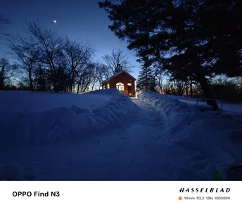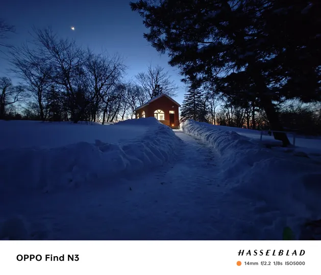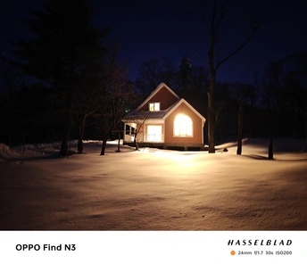踩着过膝的雪,徒步到房子的正前方为了不破坏雪地的丝滑! (oppo折叠屏手机这次刷新了我对手机摄影的概念,再加上折叠屏悬停功能所带来的长曝光,可谓是画质细腻) @SEEKER丨叁折 @绿谷旅拍日记 @米拍社长 @米拍
