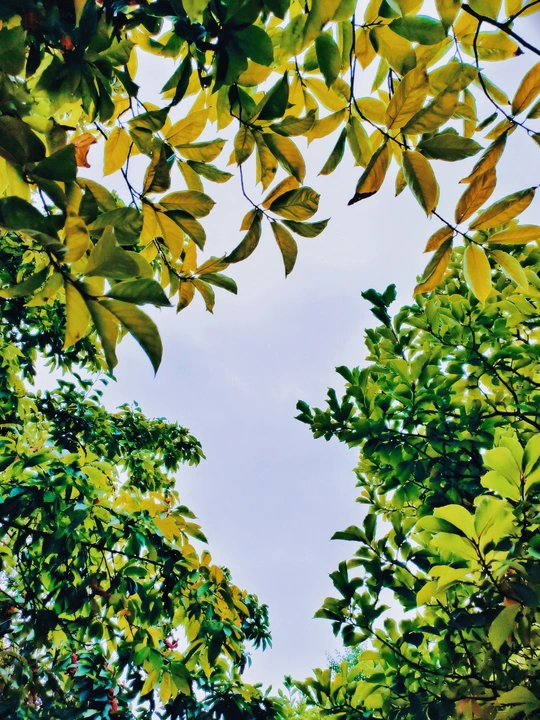 当我抬头仰望这片天空,感受着树叶带来的绿色与黄色的交融,我仿佛与大自然融为一体... 这幅画面让我体验到了生命的韵律和自然的魅力,让我感受到了绿色所带来的宁静与和平... 让我们一起感受这份美好!体验绿色!感受生命的力量!