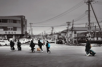 坐在公交车上,一群拉着行李,盼望归来的游子...