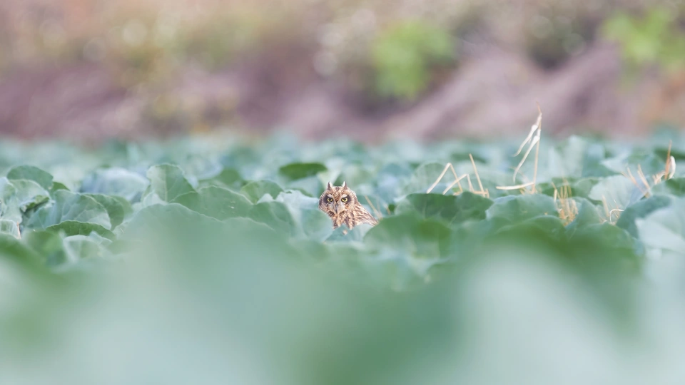 藏在菜地里的短耳鸮,可爱之极!