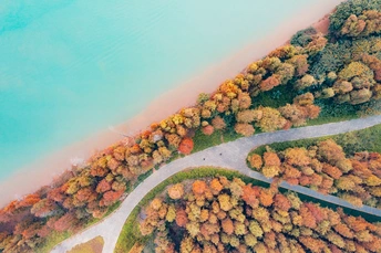 江门特成沙公园,冬季的水杉林呈现多种色彩,河岸彩林搭配水体颜色形成颜色丰富的画面。这里也是当地人散步休闲和摄影取景的好去处。