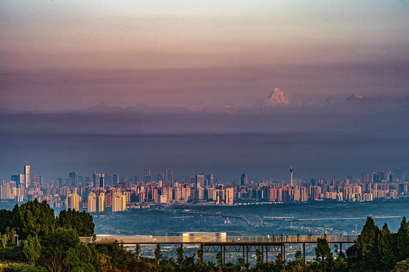 在成都遥望雪山