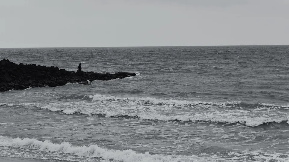 在海口的沙滩漫步,阴天里第一次尝试黑白