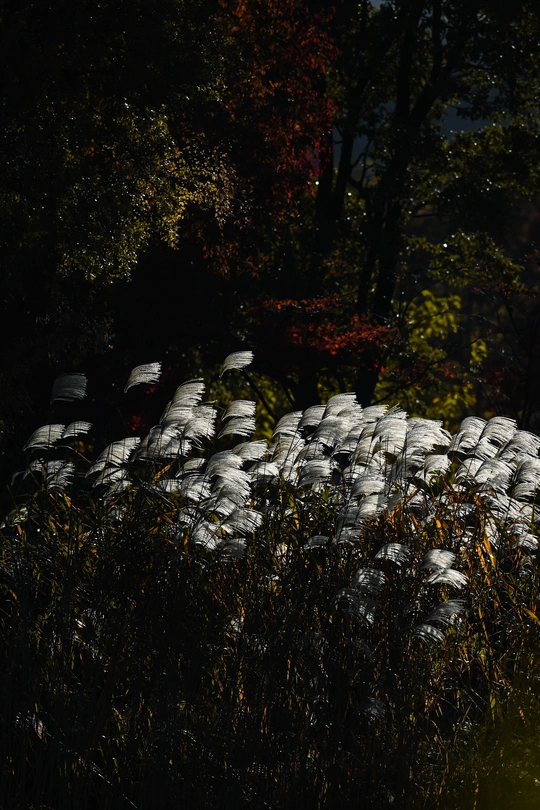 荻花生于滩头水岸,也长在山脚江畔,一袭白衣,淡紫散入,如同仙子,在秋风中轻舞,高洁清雅,有着洁净的质感,在柔美之外还具有不畏风霜,开向深秋初冬的力量。