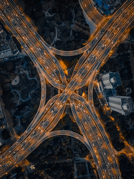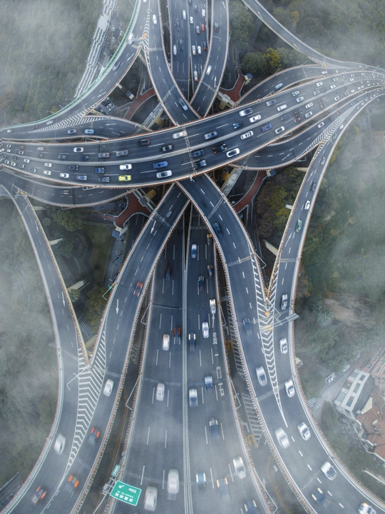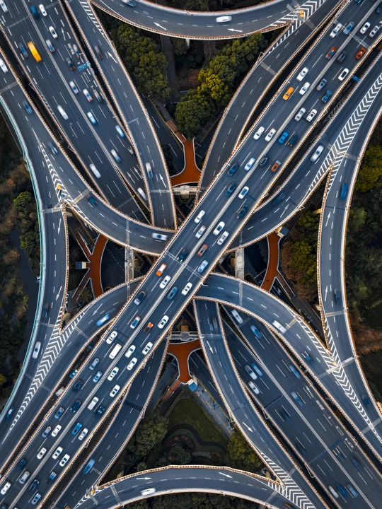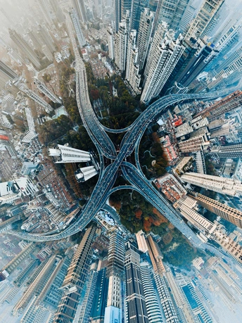航拍视角下的上海延安路立交 使用多张接片方法做出扭曲效果