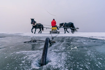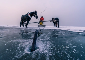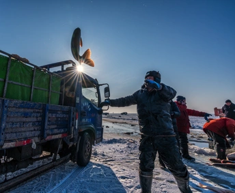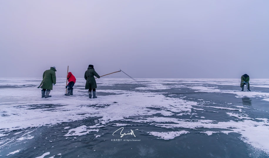 在中国的北方,每年冬季,一场壮观的冬捕活动会在吉林省查干湖上展开。这是一项有着千年历史的传统渔业活动,也是对自然和人力之间和谐共生的最好诠释。作为一位摄影师,我有幸亲身参与并记录下这一生动的瞬间。 查干湖冬捕的场面宏大而壮观。数千名渔民,在零下几十度的严寒中,手持工具,围在冰面上的大网旁,等待着鱼群的到来。当鱼群被赶进大网时,渔民们会迅速收网,将鱼群一网打尽。这个过程需要极高的协调性和默契,每一个环节都不能出错。 在冬捕现场,我深深地被这种人与自然的和谐共生所震撼。渔民们依赖湖水和鱼群生存,他们尊重自然,感恩自然,同时也保护自然。他们的生活方式,让我看到了人类与自然的和谐共处的可能性。 在现场,我用镜头记录下了这些生动的瞬间。我拍摄了渔民们在严寒中劳作的身影,他们的脸上虽然带着疲惫,但眼神中却充满了坚定和期待。我拍摄了大网落下的瞬间,那一刻,整个湖面都被鱼群的跳跃所震动。我拍摄了渔民们收获的喜悦,他们的脸上洋溢着满足和自豪。 这些照片,不仅仅是对查干湖冬捕活动的记录,更是对人与自然和谐共生理念的传播。我希望,通过我的镜头,让更多的人看到这种生活方式,感受到人与自然的和谐之美。