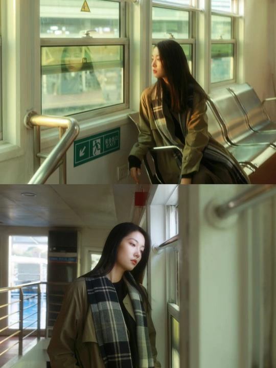 在上海夕阳下的轮渡拍了组电影风