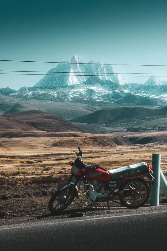 在雅拉雪山脚下发现一辆停靠于此的摩托车,它的主人,是否已经寻得梦想中的风与自由?