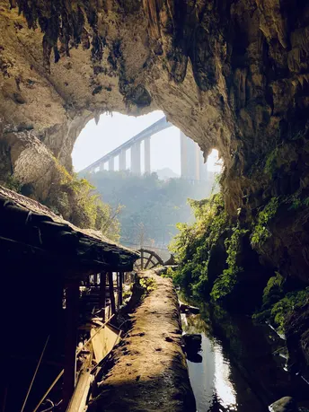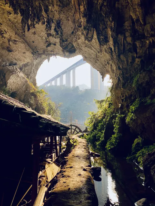 在贵州凯里,驱车30公里左右,在一片荒无人烟的天然溶洞里面。这里是石桥川洞古法造纸点。在这里造出来的纸用于古籍文物修缮。这里可以说是世外桃源,有源源不断的地下泉水常年向外流出!