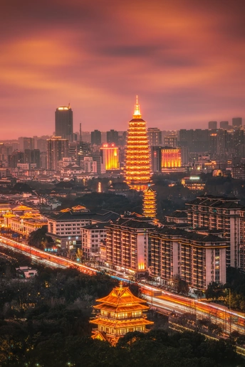 常州天宁寺塔、文笔塔、仰苏阁共同构成的“双塔一阁”经典同框,与现代建筑环绕呼应,好一幅古今交汇的壮阔盛景