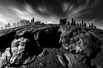 森阳8毫米鱼眼镜头拍摄,后期用镜像模糊处理天空,让画面更具有视觉冲击力。