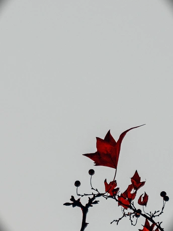秋风轻拂,红蝶舞于枝头。此图所绘,乃一片枫叶,如蝶般翩跹,在微风的拂弄下,它宛如从天而降的仙女,与万物共享秋日之静美。其红,鲜艳欲滴,犹如烈火燃烧,又似夕阳余晖,映照出秋日的丰盈与富饶。茎脉深褐,若隐若现,更增添了几分神秘与高雅。此景,乃中华大地之秋日写照,尽显传统文化之韵味。