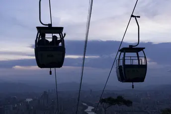 在繁华的城市中,两个人乘坐着缆车,缓缓地穿越高楼大厦和街头巷尾。他们抬头仰望,欣赏着周围的美景和城市天际线,感受着这个城市的脉搏和气息。缆车穿越河流,掠过高架桥,经过地标性建筑,每一处都让他们惊叹不已。他们沉浸在这个城市的繁华与美丽中,享受着这份独特的旅行体验。此刻,他们是城市的主宰,从高空俯瞰这个熟悉又陌生的世界。
