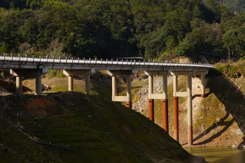 在阳光明媚的早晨,一座宏伟的桥梁横跨在静静流淌的河流之上。桥下,清澈的河水在郁郁葱葱的森林中蜿蜒流淌,与周围的青山相映成趣。这座桥仿佛是两个世界的交汇点,一边是繁华的城市,另一边是静谧的自然。它不仅方便了人们的通行,更为人们提供了一个欣赏大自然美景的绝佳位置。站在桥上,可以感受到微风吹拂着脸颊,听到鸟儿的歌唱,看到远处的山脉在晨雾中若隐若现。这一刻,人们仿佛置身于一个美丽的画卷之中,心灵得到了无比的安抚和治愈。