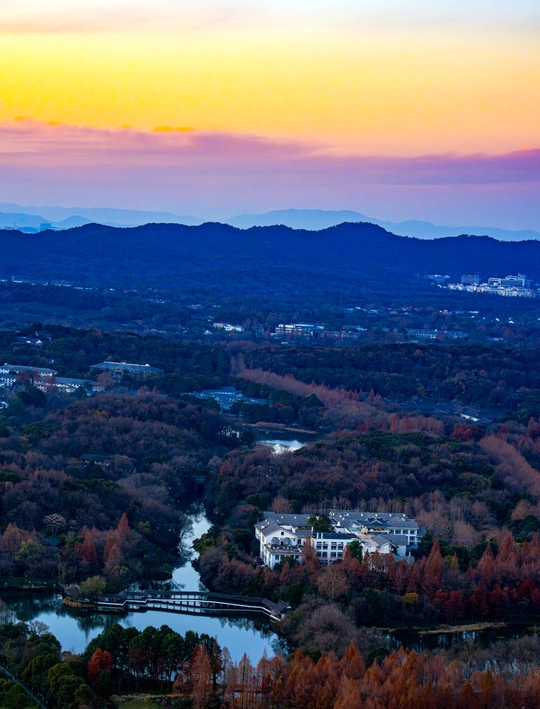 站在九曜山顶的九曜阁向下俯瞰杭州美景