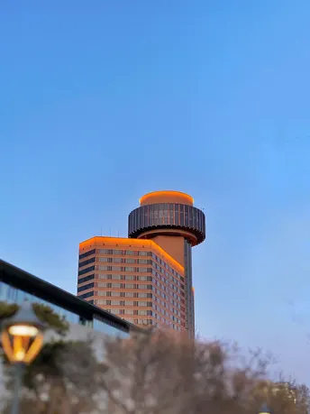 蓝调时刻建筑的景观灯亮了起来,和蓝色的天空形成对比。 iPhone 11 Pro 拍摄,Snapseed 和ReLens 后期修图。