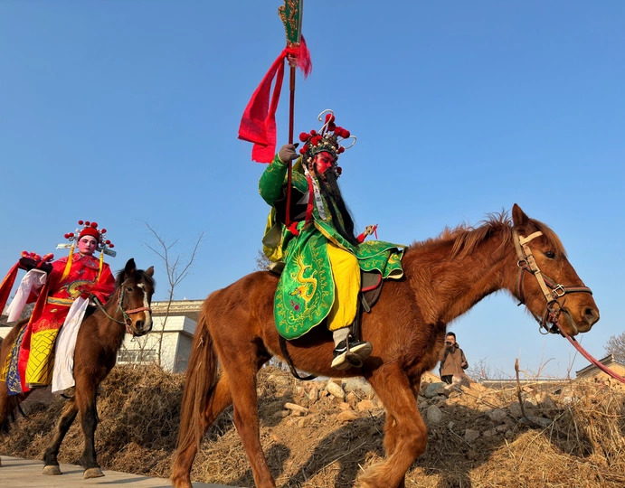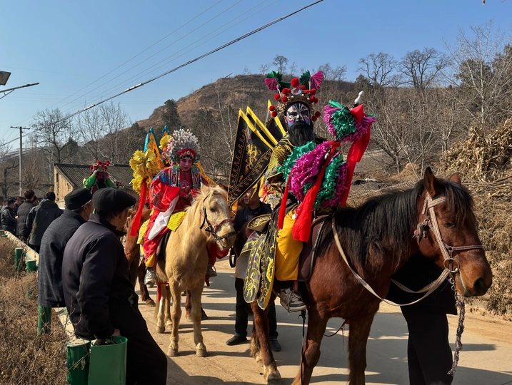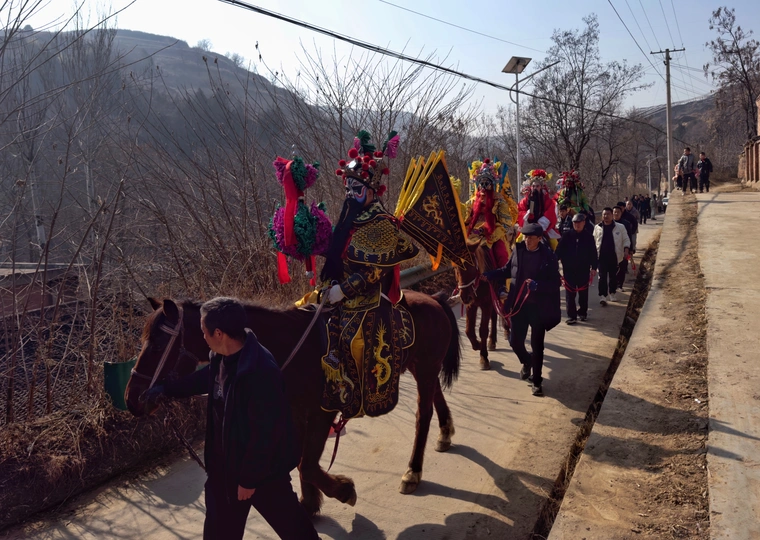 社火之于关中农村,是春节时的一场大戏,重头戏,其在民间的受重视程度,夸张地说,实在不亚于春晚。在整个过年期间,社火堪称村里的头号大事,参与人数之众、规模之大,一定位列诸事之最。一场社火,一定是要全村全民参与,要搞,就要搞一场轰轰烈烈、声震四方的大社火。 八百里黄天厚土,孕育了厚重、质朴、粗犷、灿烂的渭河文化,陇县社火便是这其中光灿绚烂的一枝,作为古代陇州先民图腾崇拜、祁天求福的礼仪活动之一,两千多年来,代代演绎,亘古相连。
