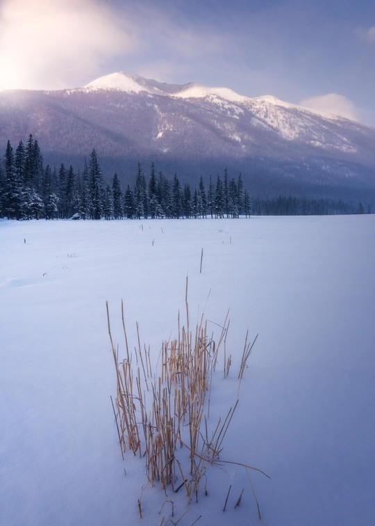 中国新疆喀纳斯神仙湾。冬季覆盖着齐膝深的大雪的河滩,以一株枯草作为前景,我喜欢它表现出的萧瑟和凄凉,而阳光照耀下的高山又是那么温暖和圣洁。