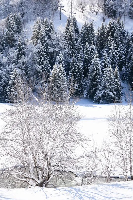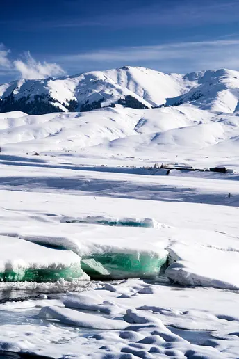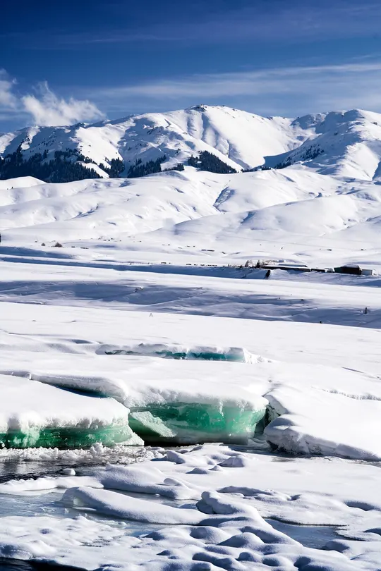 在新疆伊犁的天山山脉中,我有幸亲眼目睹了这片令人叹为观止的冬季仙境。连绵起伏的山脉被洁白的积雪覆盖,宛如一幅巨大的水墨画卷。在这片纯净的世界中,挺拔的松树毅然屹立在风雪中,它们的松针上挂满了晶莹剔透的霜花,犹如无数颗钻石镶嵌其间,闪耀着迷人的光芒。 松林间,一条清澈的溪流从山涧蜿蜒流过,溪水在冰雪的映衬下显得更加碧绿如玉。水流在石缝间穿梭,发出悦耳的潺潺声,给这寂静的冬日带来了一丝生机与活力。沿着溪流的方向望去,你会发现一片令人叹为观止的蓝冰世界。阳光透过薄薄的冰层,折射出梦幻般的蓝色光芒,让人仿佛置身于一个童话般的世界。 在这里,每一处景色都如诗如画,每一个瞬间都值得被珍藏。我按下快门,记录下了这美妙的雪景,心中充满了对大自然的敬畏与感激。新疆伊犁的天山,不仅展示了大自然的壮丽风光,更让我深刻体会到了自然之美、生命之坚韧。
