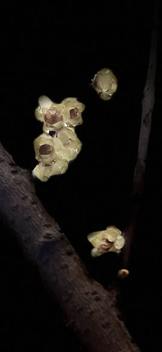 咋夜电闪雷鸣,狂风骤雨,今早蜡梅寒中绽放,傲然挺立……