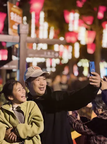 自拍一刻的父女,节日的喜悦和亲情溢于言表~