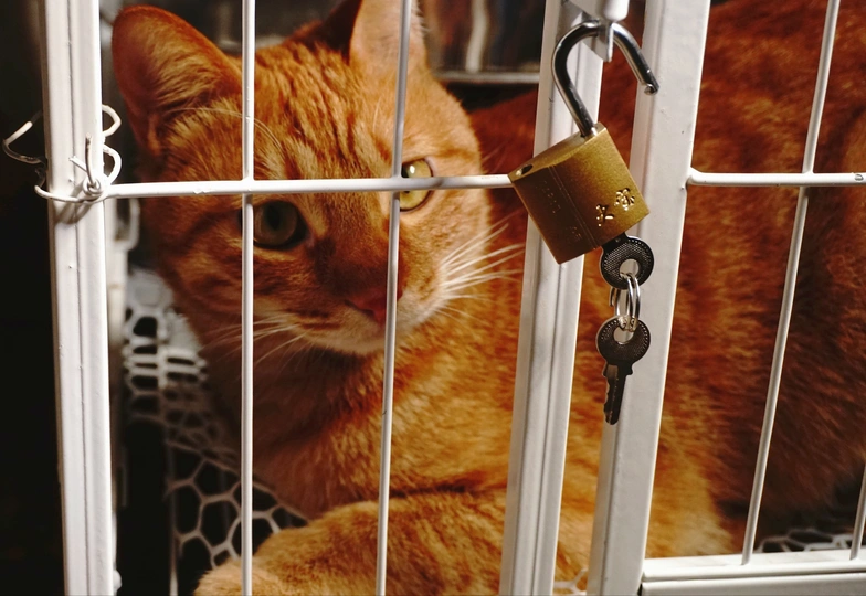 🐱被锁住的自由😿:猫咪的渴望眼神2。猫的困笼之境🚪,眼神诉说着对外面世界的向往