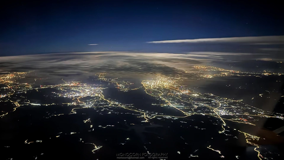 人类的城市和聚落在夜空下蔓延,像是发出萤光的菌毯。