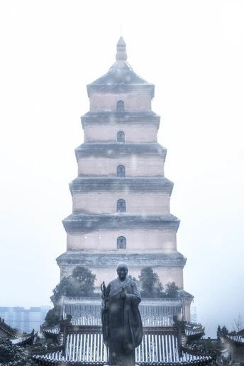 西安,一下雪就变成了长安,唐玄奘雪中离别大雁塔。