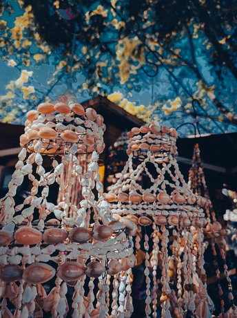 去南沙天后宫的路上,看见一个小商铺在卖贝壳制作成的各种工艺品,一眼就看见了贝壳风铃,海风抚摸它发出清脆的声响如同梦境一般。