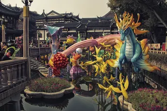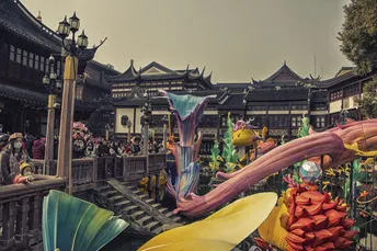 今年豫园花灯龙的造型气势磅礴,湖心亭龙灯的造型卡通,比去年收费看灯的时间延长许多,2.10-2.25号晚上都要收费了,2.10-2.16号白天都收费,到现在我晚上还没去拍过。